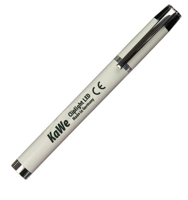 La linterna Cliplight LED Kawe permite a los profesionales de la salud tener una mejor visibilidad de cavidades como la boca y las orejas durante la examinación de sus pacientes. Este útil de examinación es ideal para revisar de manera rápida la capacidad de reacción de las pupilas. La lámpara de diagnóstico Cliplight LED Kawe es muy fácil de utilizar. Su forma compacta le permite tenerla consigo en todo momento sin importar a dónde usted deba ir.