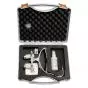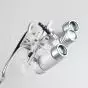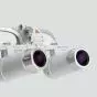 Dos tornillos de ajuste independientes para el ajuste preciso de la distancia entre pupilas. Cinco posibilidades para el montaje de la óptica permiten las más variadas clases de reconocimiento tanto concomo sin montura de gafas (con adaptador angular).