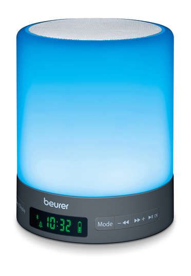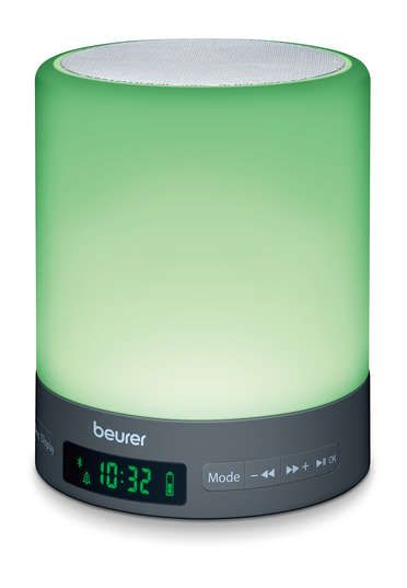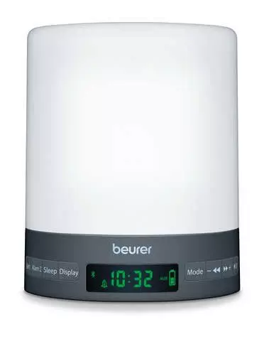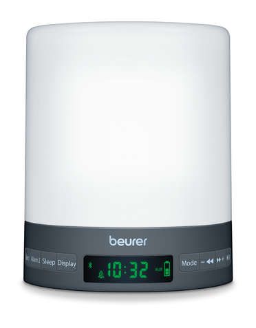 La opción de reposo (repetición de alarma) funciona de uno a 30 minutos y la alarma es ajustable para 2 horas diferentes. El reloj despertador WL 50 de Beurer tiene la capacidad para 10 emisoras de radio según sus preferencias. También es posible escuchar su propia música a través de la entrada Aux (cable incluido) o por medio del Bluetooth. Este simulador del color del amanecer y anochecer WL 50 de Beurer es también una lámpara de cabecera debido a la luz que proyecta.