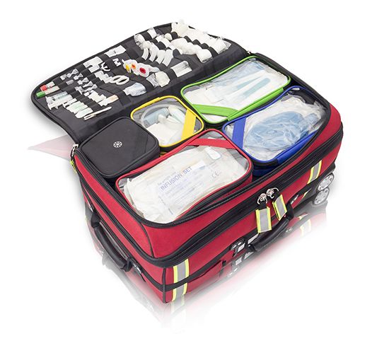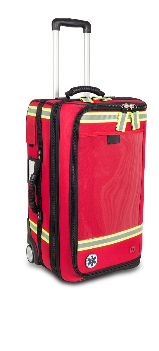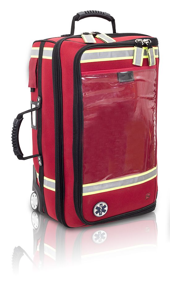 Es el maletín de emergencias de gran capacidad con trolley que permite transportar de manera cómoda y ordenadamente todo el material médico necesario en servicios de urgencia