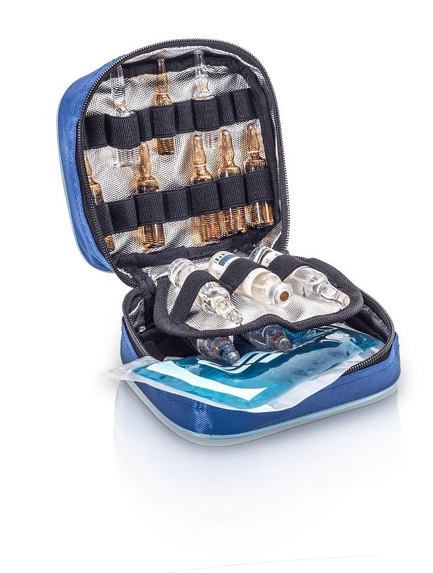 Maletín de enfermería Community Elite Bags - Ampulario isotérmico con 29 gomas elásticas - Bolsillo plano - Bolsillo de rejilla - 2 Bolsillos frontales para objetos personales - Peso: 1,20 kg - Dimensiones exteriores: 36 x 26 x