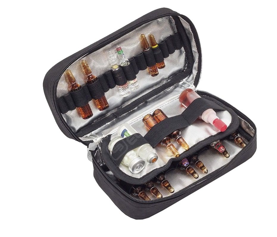 Diseñado hasta en los más mínimos detalles, ofrece una organización óptima con tres compartimentos extraíbles, uno especialmente acolchado para instrumentos frágiles, así como un portampollas isotérmico con 31 elásticos. Un cierre con llave asegura la confidencialidad del material médico.