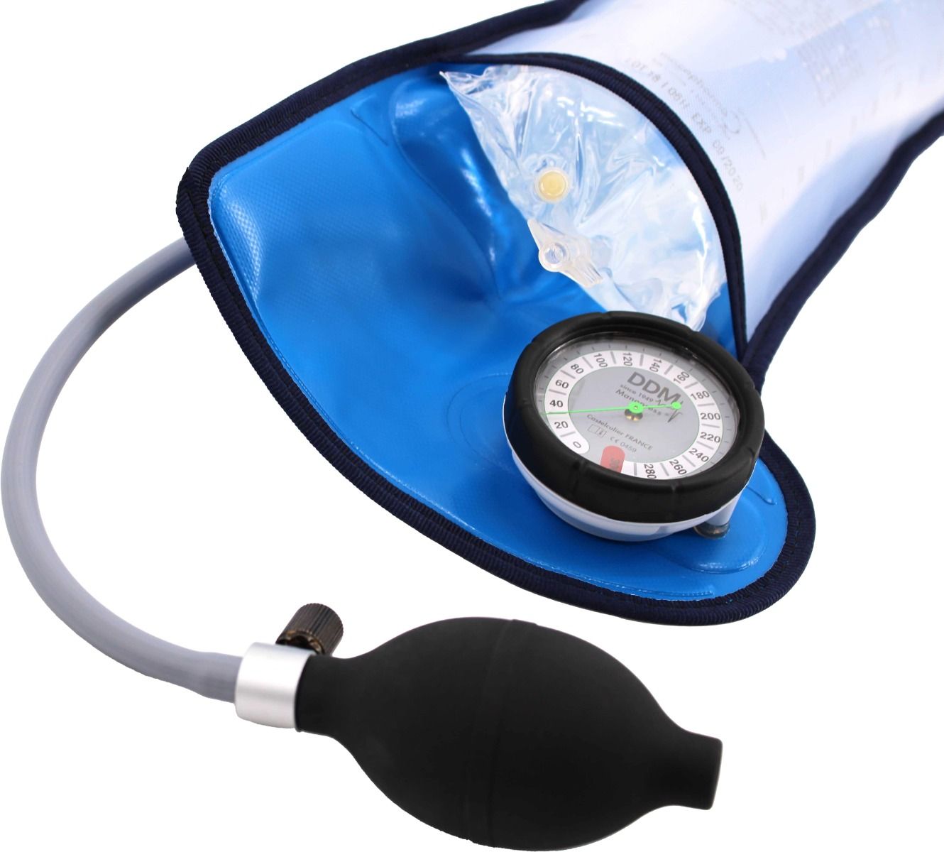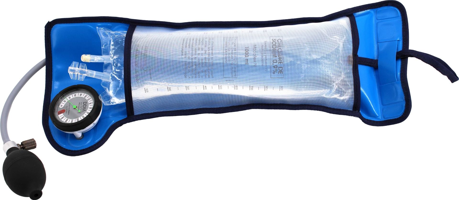 Con un dial claro y preciso, el manguito DDM muestra la presión aplicada con una precisión de ± 3 mmHg. Esto permite un control óptimo de la velocidad de infusión, garantizando una administración segura y eficaz de líquidos intravenosos, adaptada a las necesidades específicas de cada paciente.