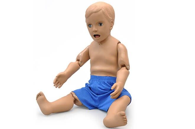 Este maniquí simulador para cuidados pediátricos simula un niño de un año de edad con brazos y piernas giratorios (codos y rodillas articulados) y cabeza articulada. Permite practicar los procesos de cuidados pediátricos básicos y avanzados.