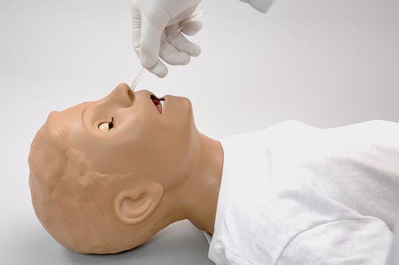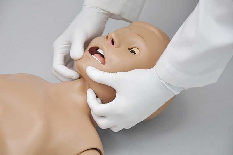 Permite el entrenamiento a las tecnicas de cuidados pediátricos de base y avanzados:baños y vendajes - ejercicios oftalmologicos - higiene bucco-dental (mandíbula articulada con dientes y lengua) - alimentación con sonda y succión gastrica - inyección intramuscular.