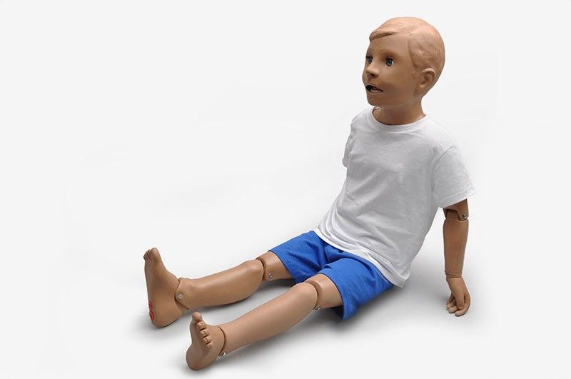 Este maniqui simula un niño de cinco años con brazos y piernas mobiles (codos y rodillas articulados) y cabeza articulada. Permite el entrenamiento a las tecnicas de cuidados pediátricos de base y avanzados, tales como:
