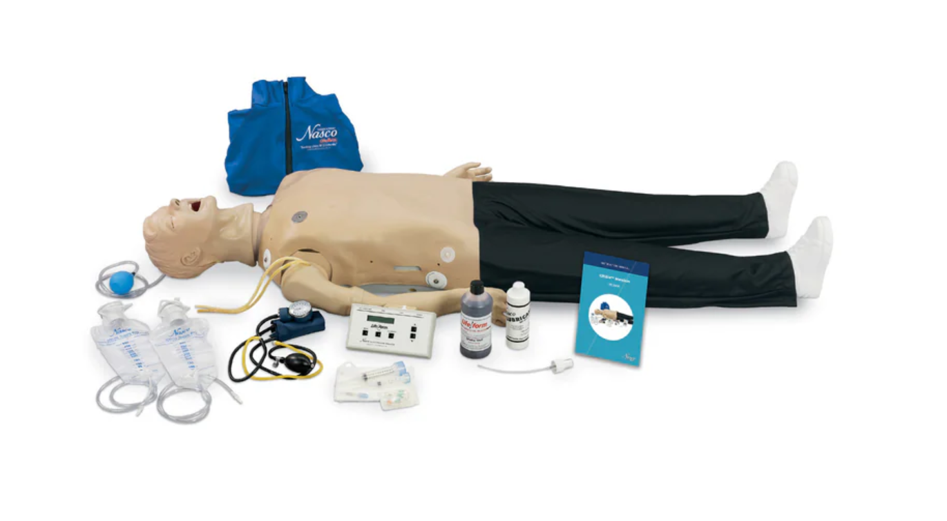 Este maniquí está destinado a ser utilizado como herramienta pedagógica para la enseñanza y demostración de técnicas de primeros auxilios en situaciones reales. El producto real puede diferir ligeramente de la foto. Nasco Healthcare se reserva el derecho de modificar el color, los materiales, los suministros o las funciones del producto según sea necesario.