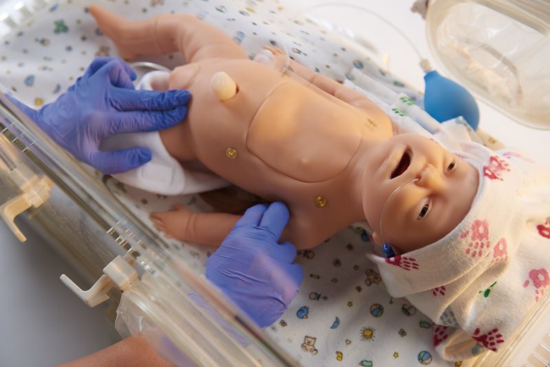 - Vías respiratorias, respiración, ventilación e intubación: Entrene a vuestros estudiantes a auscultar los sonidos pulmonares, en los momentos de ventilación del recién nacido a controlar la frecuencia cardíaca y la profundidad de la respiración.