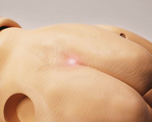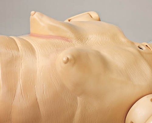 Este maniquí de simulación posee una apariencia femenina y su material de revestimiento ha sido especialmente fabricado para donarle la apariencia de la piel de una persona mayor.