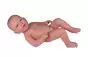 Gracias a su boca entreabierta, la muñeca puede utilizarse para simular la lactancia. El cordón umbilical sobresale voluntariamente para dar más realismo y permitir el entrenamiento en el cuidado de ésta parte tan delicada. Los pliegues representados en la piel permiten el entrenamiento correcto en la limpieza de la misma.