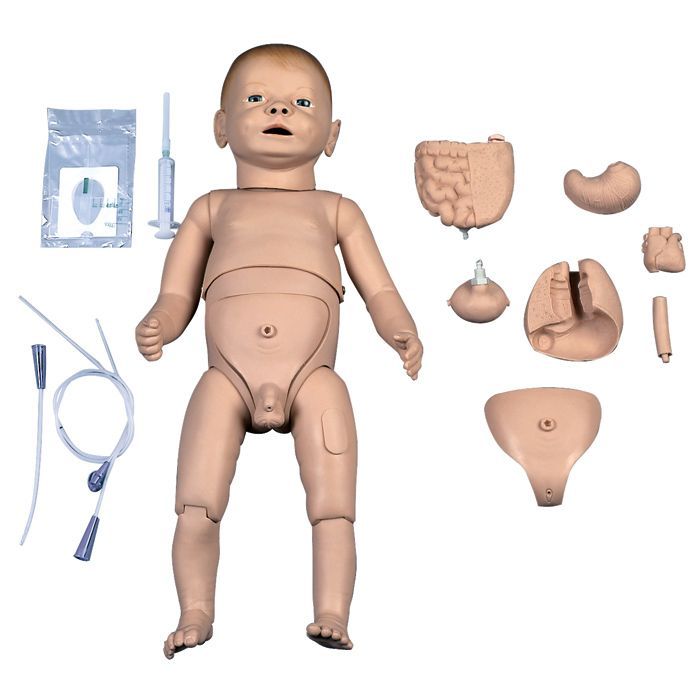 Maniquí para el cuidado del paciente recién nacido P 30 - Permite la práctica de todas las medidas importantes de la atención prestada a un bebé sano o enfermo - Viene con un paquete completo de uso