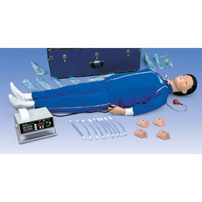 Opcionalmente también se pueden practicar medidas con un niño, simplemente cambiando los resortes que se incluyen en el suministro del torso. Las mascarillas para cada participante individual del curso, con válvula de retención, así como las vías respiratorias de un solo uso ofrecen máxima protección contra contaminaciones cruzadas. Suministro con traje de entrenamiento (chandal) lavable, resortes para uso como niño, 10 vías respiratorias inferiores (de un solo uso), 10 tráqueas (de un solo uso), cinco mascarillas higiénicas para la cara y un maletín de transporte.