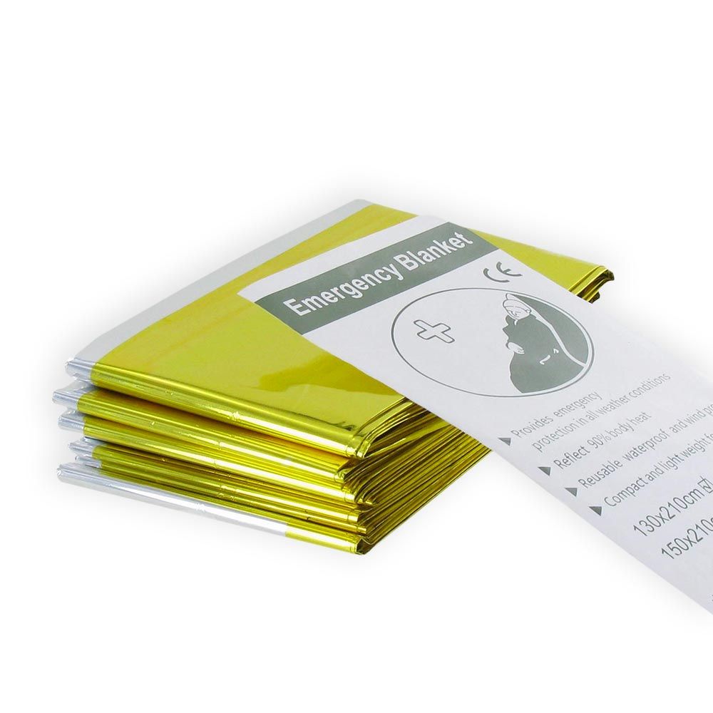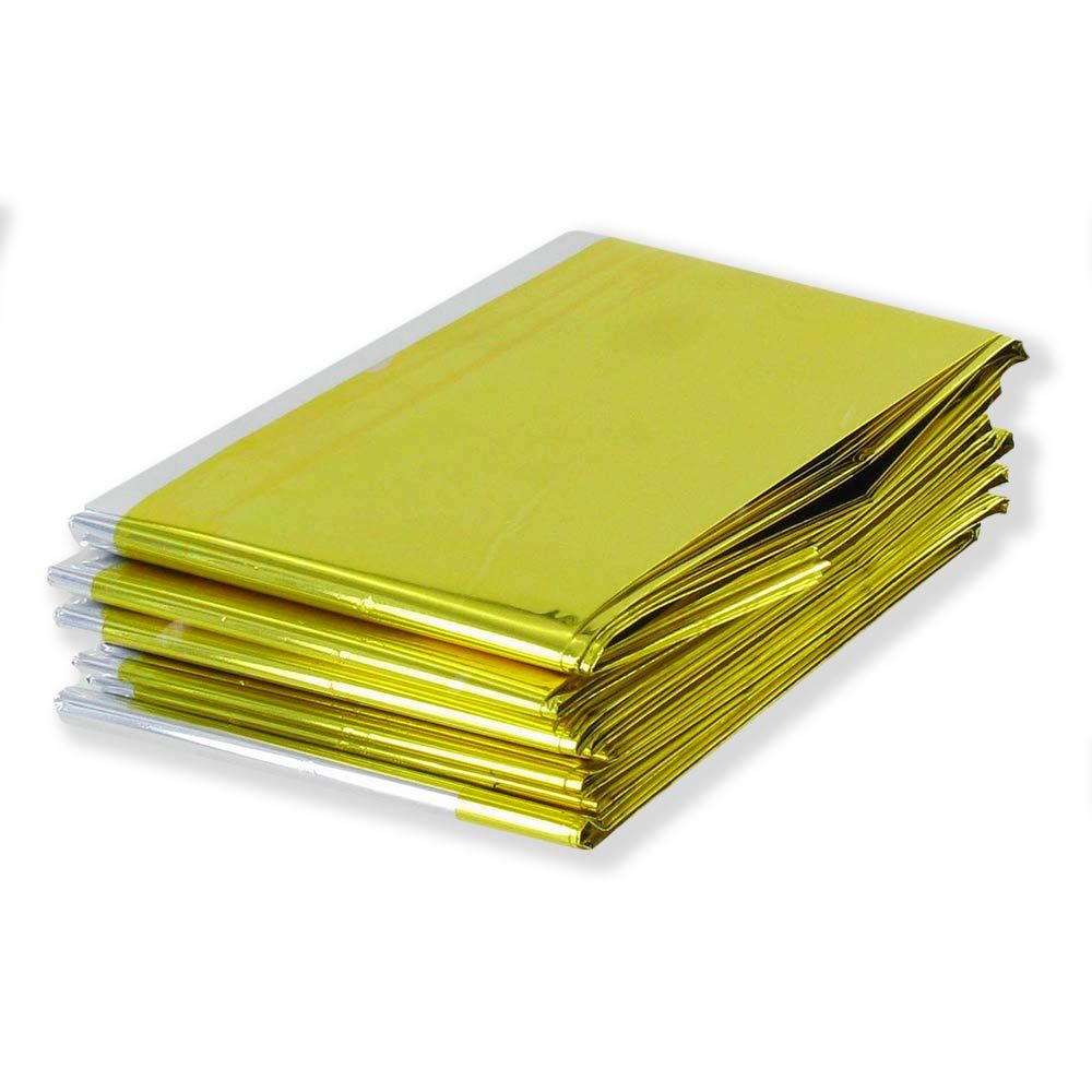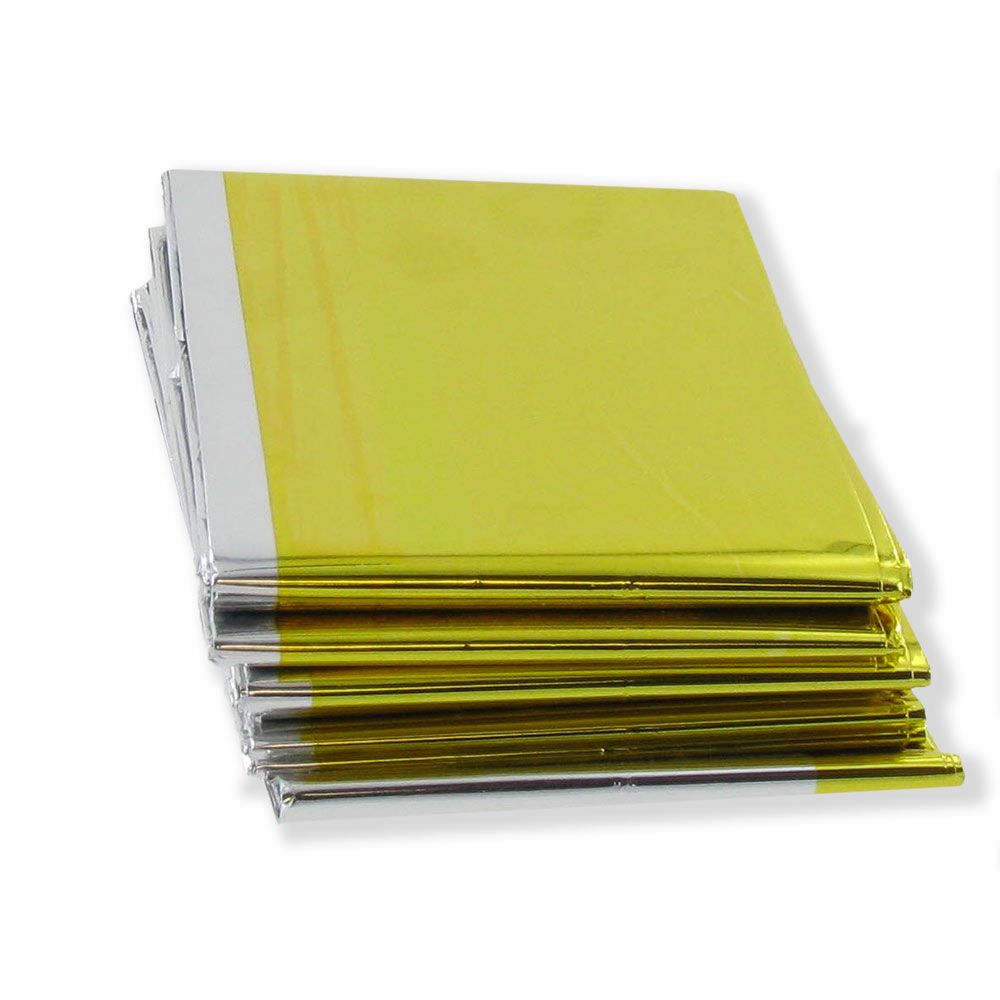 - La manta de supervivencia 210 x 130 cm es isotérmica y esta compuesta de dos caras (oro/plata). Esta fabricada con hilo en polyester metalizado muy resistente e impermeable. El lado oro (o lado dorado) posicionado hacia adentro protege del frío y permite al usuario conservar su temperatura corporal. Este lado dorado colocado hacia afuera tiene una función diferente, aísla el calor.