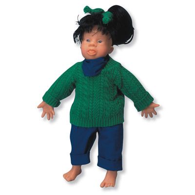 Está disponible tiene con la boca abierta o cerrada, con la boca cerrada un efecto educativo en el sentido de que los niños aprenden a mantener la lengua dentro de la boca. El maniquí también es apropiado como juguete didáctico e ideal para los niños no minusválidos. Debido a su aspecto, el maniquí puede producir más sentimientos y comprensión que otras muñecas. El aprender y entender su entorno jugando, facilita un mejor entendimiento y aceptación de las personas con minusvalidez. El maniquí se emplea con particular éxito en hospitales infantiles, consultorios pediatricos, asociaciones para Síndrome a Down, estancias infantiles y centros de educación preescolar.