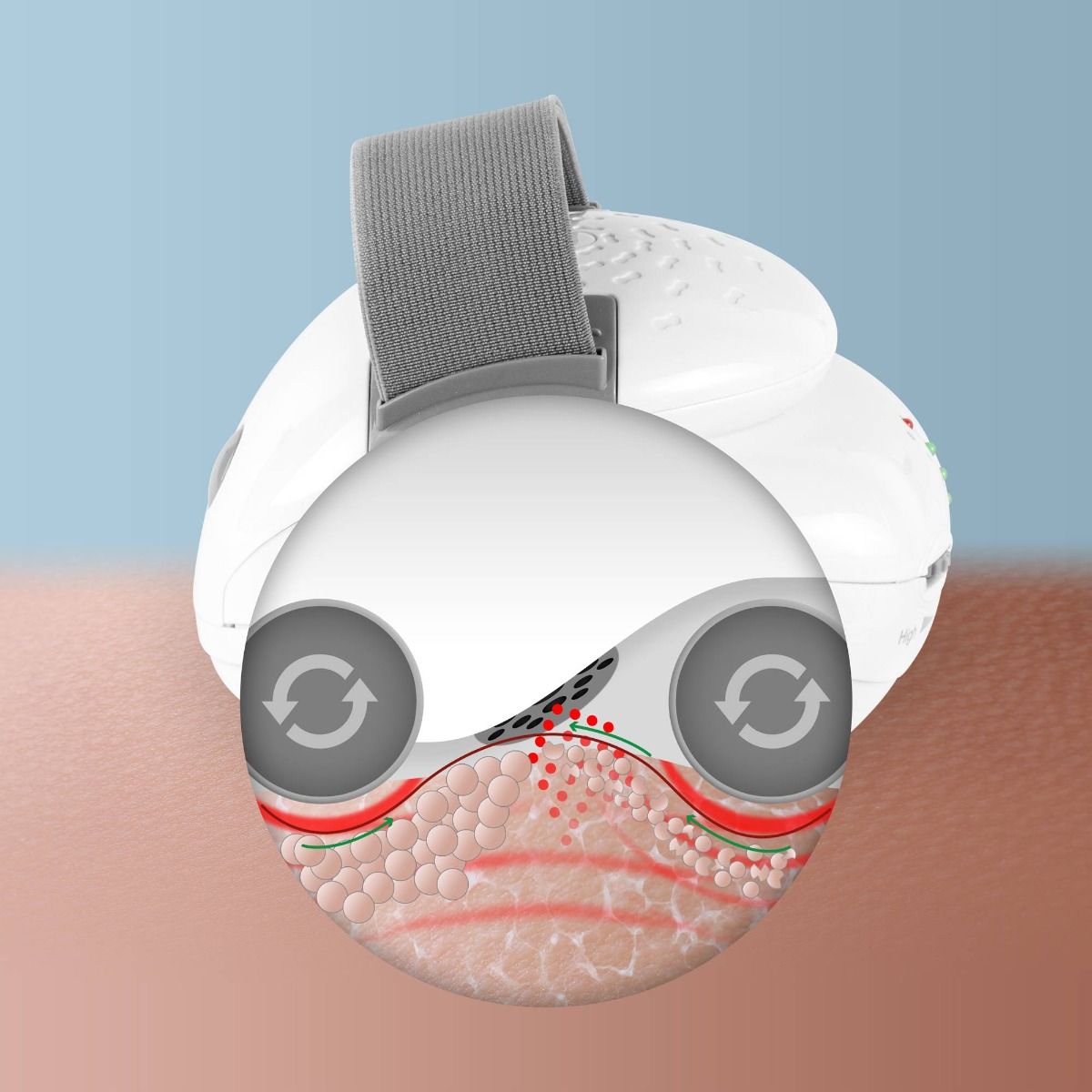 Lanaform Skin Mass es un aparato de masaje anticelulítico diseñado para tratar eficazmente la celulitis y la piel de naranja en casa. Basado en la técnica profesional de palpación-rodillo, cuenta con dos rodillos motorizados que reproducen un doble pellizco preciso para trabajar en profundidad los depósitos de grasa.