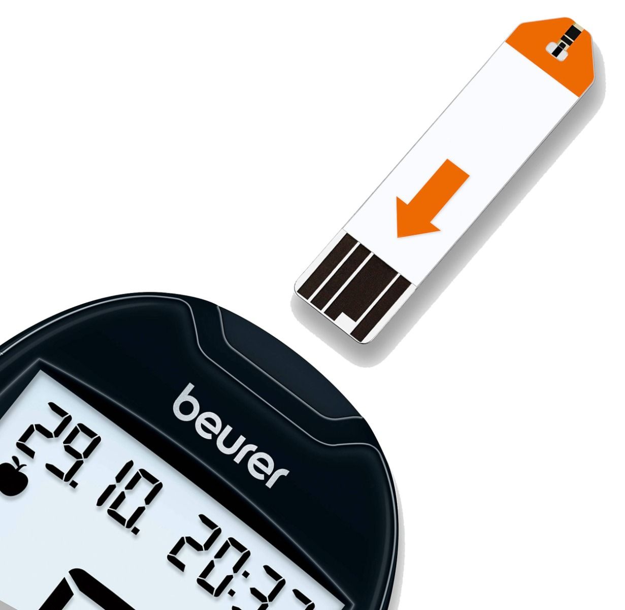 - De uso fácil: canal de inserción iluminado, pantalla grande con iluminación de fondo, tiras reactivas anchas, marca de valor de medición sencilla para la gestión optimizada de la diabetes: antes de comer, después de comer, marca general