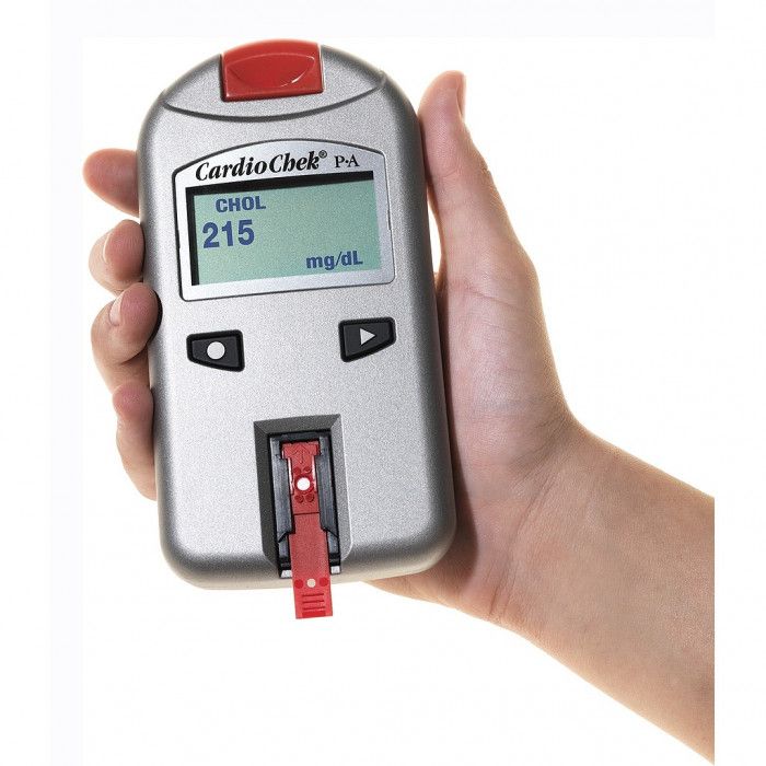 El glucómetro CardioChek PA es un aparato económico que le permite realizar pruebas rápidas de glucosa, triglicéridos y colesterol HDL para la detección precoz de la diabetes. Para uso profesional, permite analizar de forma precisa el nivel de colesterol presente en la sangre y descubrir la causa si es demasiado alto. El analizador de sangre de CardioCheck PA es muy fácil de utilizar y funciona con pilas, solo necesita una gota de sangre y en menos de 2 minutos hace la prueba. Este aparato realiza dos tipos de análisis: