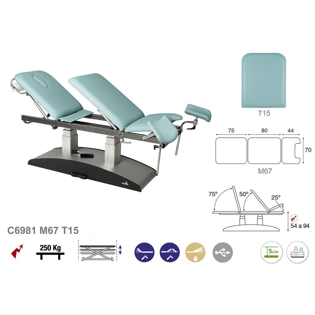 Denominación : Camilla ginecológica eléctrica mixta Ecopostural C6981