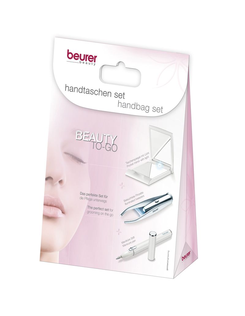 BS05 Espejo de bolsillo con luz Beurer, HL05 Pinzas con luz, MP05 Lápiz de manicura Set de bolso