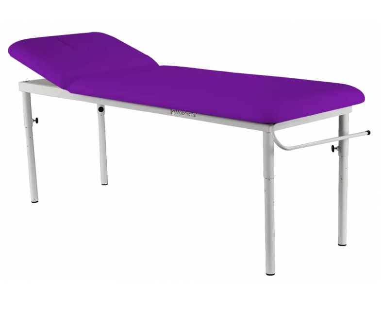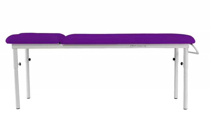 La robusta estructura de la camilla puede soportar un peso de varios cientos de kilos. Está fabricada con tubos de acero soldados recubiertos de pintura epoxi horneada a 210° para garantizar su durabilidad. Para facilitar el traslado de la camilla de una habitación a otra en caso necesario, las patas se pueden desmontar, lo que facilita la manipulación de la camilla de reconocimiento fija de 2 piezas CDF-20 de Mobercas.