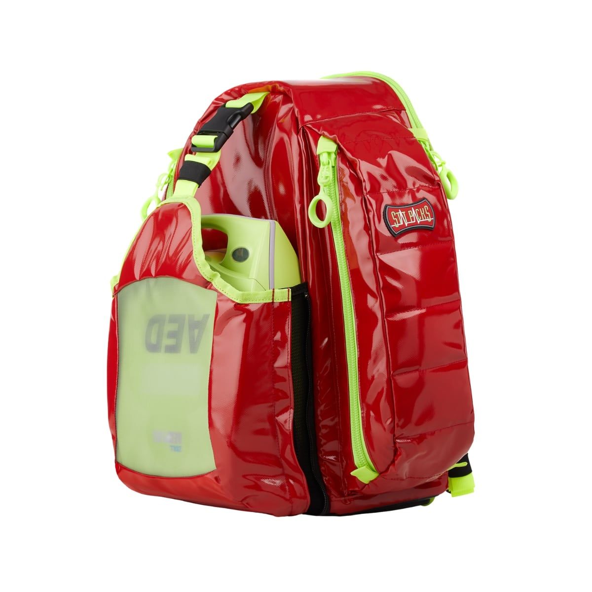 La gran innovación de este modelo: el bolsillo para DEA, de acceso rápido gracias a su cierre único y su ventana transparente, que permite intervenir inmediatamente sin abrir la bolsa. El compartimento principal, accesible desde la parte posterior, ofrece una organización personalizable con bolsillos extraíbles y correas de velcro, y su diseño transparente facilita la identificación del equipo.