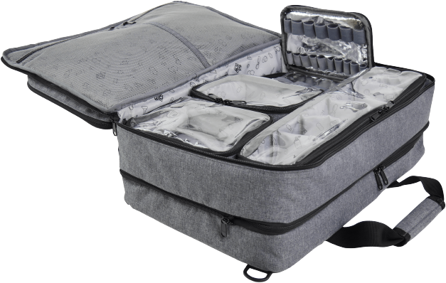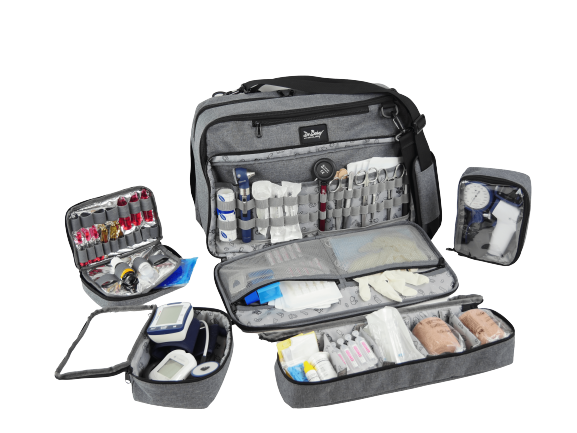 Esta mochila cuenta con varios compartimentos de almacenamiento, incluyendo un compartimento principal con cierre de cremallera, un compartimento ventilado para zapatos, un bolsillo frontal con cremallera y un bolsillo interior. Estos compartimentos le permiten transportar y organizar fácilmente sus suministros médicos, documentos y efectos personales.