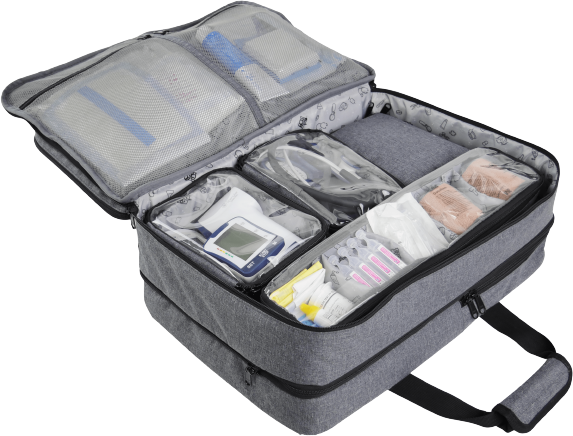 El material médico visible en las fotos no se vende con la mochila.