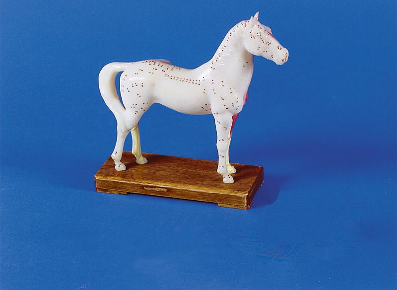 Questo modello di agopuntura cinese del cavalo 2058 Erler Zimmer è un'elegante statuetta 2 in 1 che presenta un cavallo con da un lato una superficie bianca e liscia dove è possibile osservare l'insieme dei punti energetici da stimolare nel cavallo, e dall'altro lato, l'anatomia del cavallo è esposta per poter osservare gli organi, la struttura muscolare e ossea.