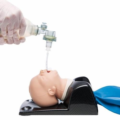 Sus vías respiratorias realistas permiten practicar todos los aspectos del tratamiento de las vías respiratorias, incluyendo la ventilación con presión positiva, la inserción de mascarillas laríngeas y las intubaciones endotraqueales (nasales y orales).