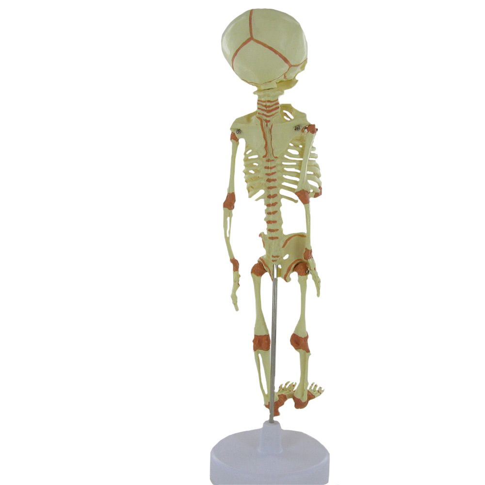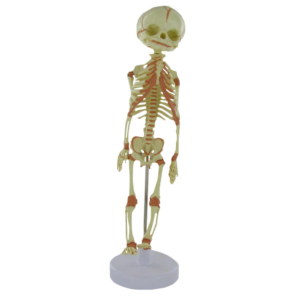 Se habla de feto a partir de la octava semana de gestación. Es importante tener en cuenta que a partir de ese momento los órganos comienzan a desarrollarse. El esqueleto de feto articulado Mediprem le permite estudiar las diferentes suturas, placas óseas e incluso los huesos. En el cráneo fetal se pueden observar claramente las fontanelas, las cuales se convertirán en huesos con el tiempo. Así como las suturas se forman con el paso del tiempo contra las placas óseas, el cráneo fetal también se forma a medida que el bebé crece. Si usted es estudiante de puericultura quien debe aprenderse las partes óseas de un feto entonces este esqueleto es perfecto para usted. Con este modelo podrá aprenderse a la perfección el esqueleto de un feto. ¿Es usted un médico especialista en bebés? El esqueleto anatómico de feto le permitirá explicar a los futuros padres no solo acerca de las etapas del desarrollo embrionario sino también acerca del crecimiento del feto. Asimismo, le permite analizar el desarrollo del cráneo y su tiempo de formación. Por otra parte, también tiene la posibilidad de señalar directamente diferentes problemas en la gestación tales como las anomalías o las malformaciones óseas y articulares.
