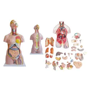 El modelo anatómico del torso humano bisexuado 45cm Mediprem es un dispositivo de estudio, abierto en la parte delantera y trasera. Todos los sistemas corporales son representados metódicamente y se cuenta con fácil acceso a ellos. Compuesto de 18 partes, este modelo muestra de manera realista la estructura anatómica con todos esos detalles.