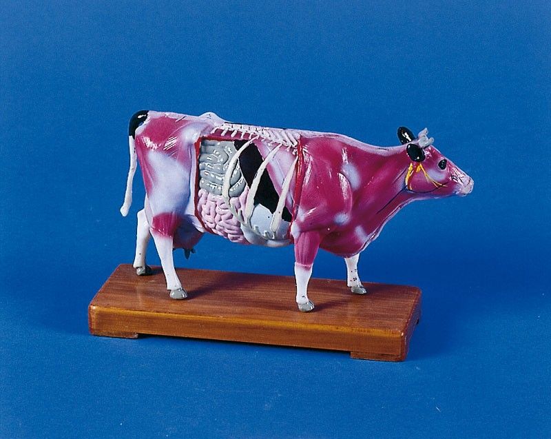 El modelo de acupuntura china de la vaca 2056 Erler Zimmer es una elegante estatua 2 en 1 que ilustra una vaca con un costado en el cual la superficie es blanca y lisa donde es posible observar la totalidad de los puntos energéticos que puedes ser estimulados en el animal. En el otro costado, se puede observar la anatomía interna de la vaca en la cual se pueden observar de manera clara los órganos, la estructura muscular y la estructura ósea.