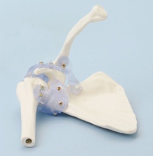 Este modelo de articulación escapulohumeral con ligamentos de Erler Zimmer es una reproducción de calidad superior del hombro derecho humano. La articulación presenta la cintura escapular fielmente reproducida con la clavícula y el omóplato, así como el muñón de un brazo.
