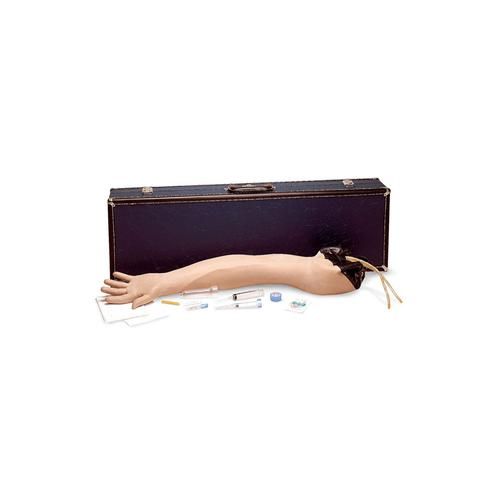 Este Modelo de brazo de inyección IV y IM 3B Scientific W44002 ofrece la posibilidad de practicar una inyección intramuscular. Una almohadilla de espuma representa el tejido muscular y los límites son identificados por medio de bases naturales similares a los huesos.