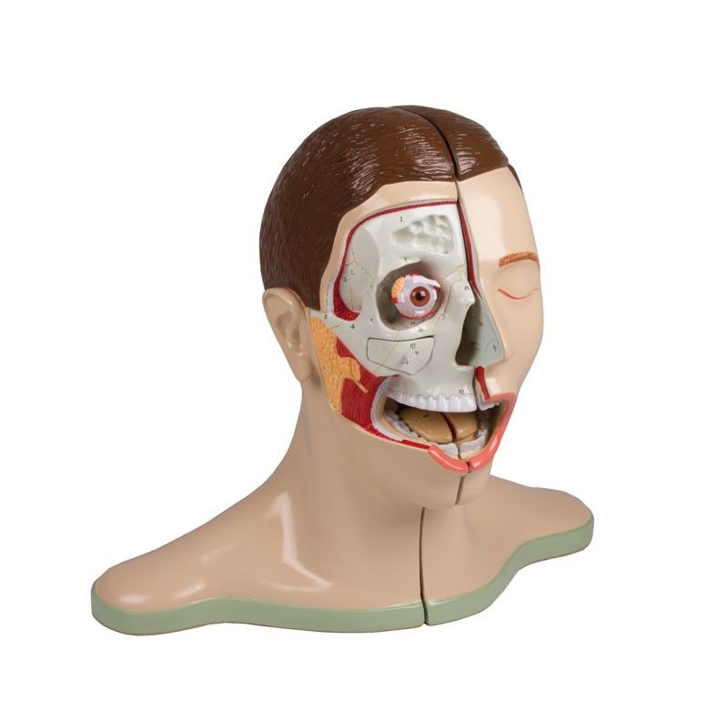 El modelo de cabeza en 5 partes de Erler Zimmer cuenta con un globo ocular, un cartílago y la mitad de la lengua desmontable, para una observación todavía más en detalle.
