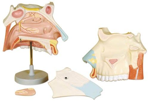 El modelo de cavidad nasal en 3 partes de Erler Zimmer presenta un corte entre las dos cavidades para observar la cavidad nasal izquierda. Esta representación de calidad superior presenta una gran precisión. Aumentado 3 veces en relación a su tamaño real, este modelo a color está compuesto de un tabique nasal, y un epitelio olfativo desmontable para observar fácilmente la estructura interna.