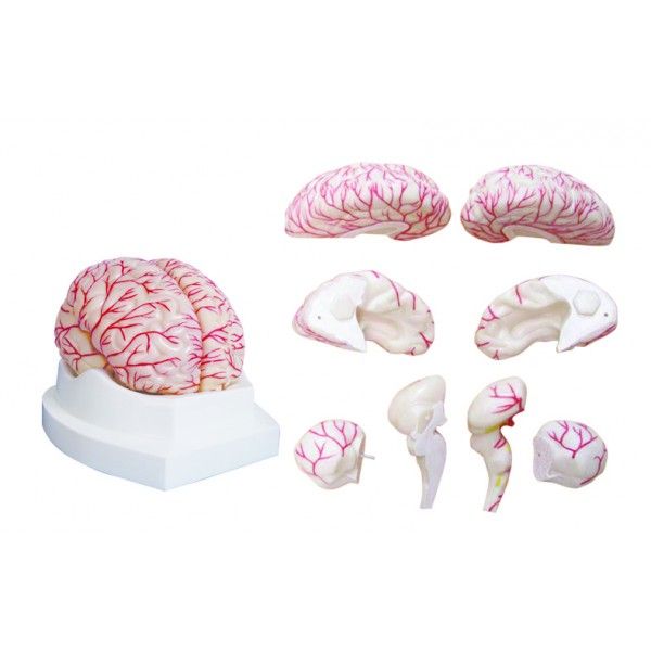 Este modelo anatómico muestra la estructura de la anatomía del cerebro y la posición funcional de la corteza cerebral. En este modelo también se incluyen las arterias, lo que le permitirá estudiar y analizar el cerebro en profundidad. Esta estructura anatómica se compone de 2 partes.