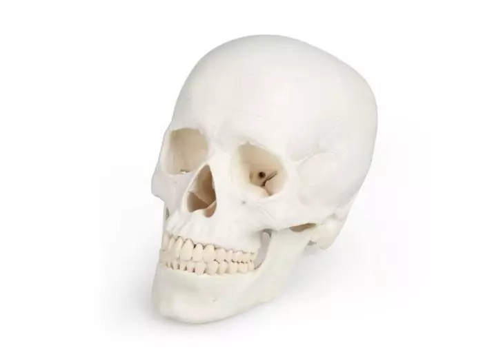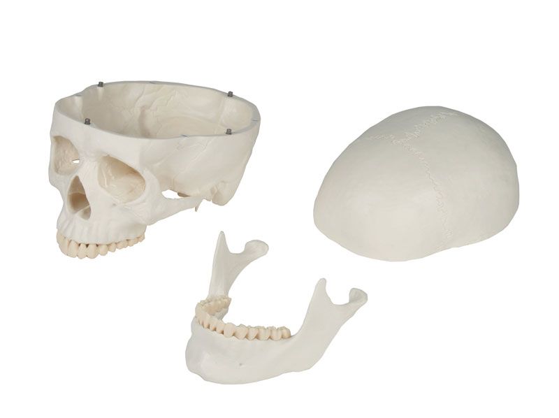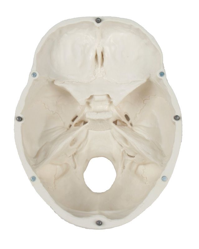 Este cráneo es un molde natural a partir de verdaderos cráneos humanos que permite bien comprender la structura compleja del cráneo. Este modelo de cráneo se desmonta en 3 partes : la bóveda craneal, la base del cráneo, la mandibula.
