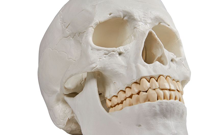 Modelo de cráneo, 3 partes Erler Zimmer - Detalles anatómicos reproducidos con precisión - Mandibula flexible - Talla : 20 cm x 13,5 cm x 15,5 cm - Peso: 700 g - Garantía: 3 años