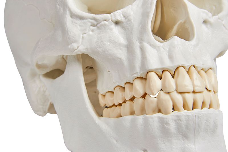 Todos los detalles anatómicos están reproducidos con precisión : los dientes corresponden a une dentición natural, con un respecto de la posición de los dientes y de los espacios interdentales.