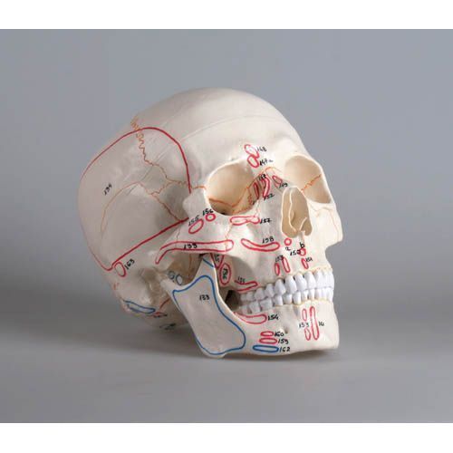 Modelo de cráneo en 3 partes, con músculos marcados Erler Zimmer - Tamaño: 20 x 13,5 x 15,5 cm - Peso: 700 g