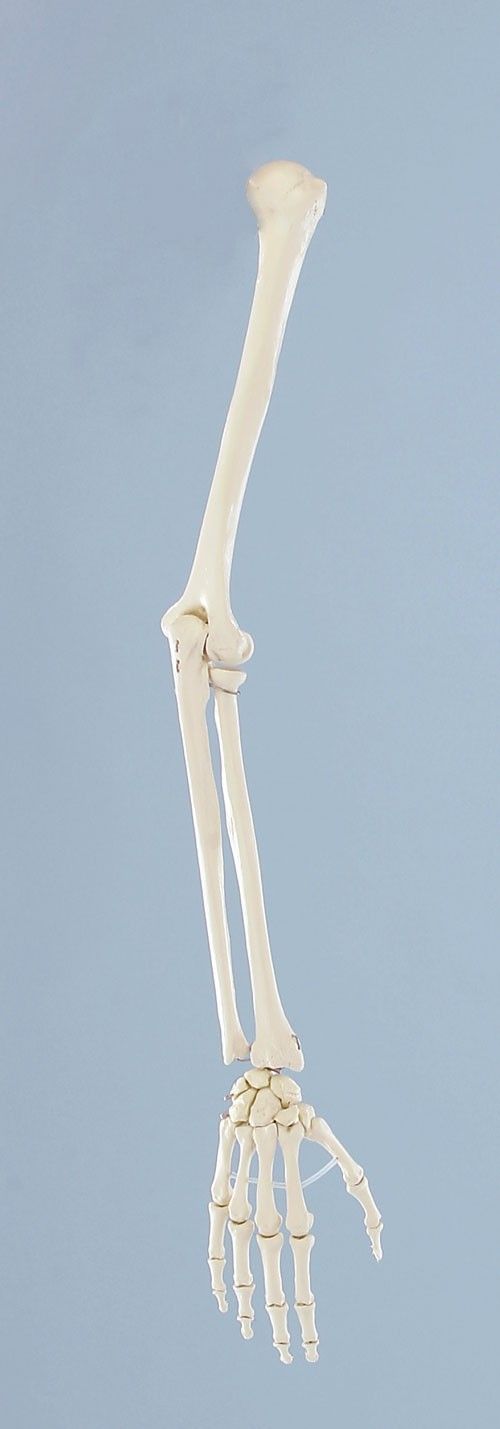 Este Modelo de esqueleto del brazo 6012 Erler Zimmer es una representación fiel y a tamaño natural de una brazo humano (lado derecho). De calidad superior, este molde permite reproducir los movimientos naturales del brazo humano como la pronación y la supinación que sucede cuando el brazo gira a lo largo de la muñeca y la palma de la mano.