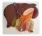 Los órganos representados a tamaño natural son: el hígado, la vesícula bilial, el páncreas y el duodeno. Cada unos de estos órganos están cortados para permitir la observación de la estructura interna. Son igualmente visibles la vena hepática y la aorta.