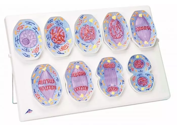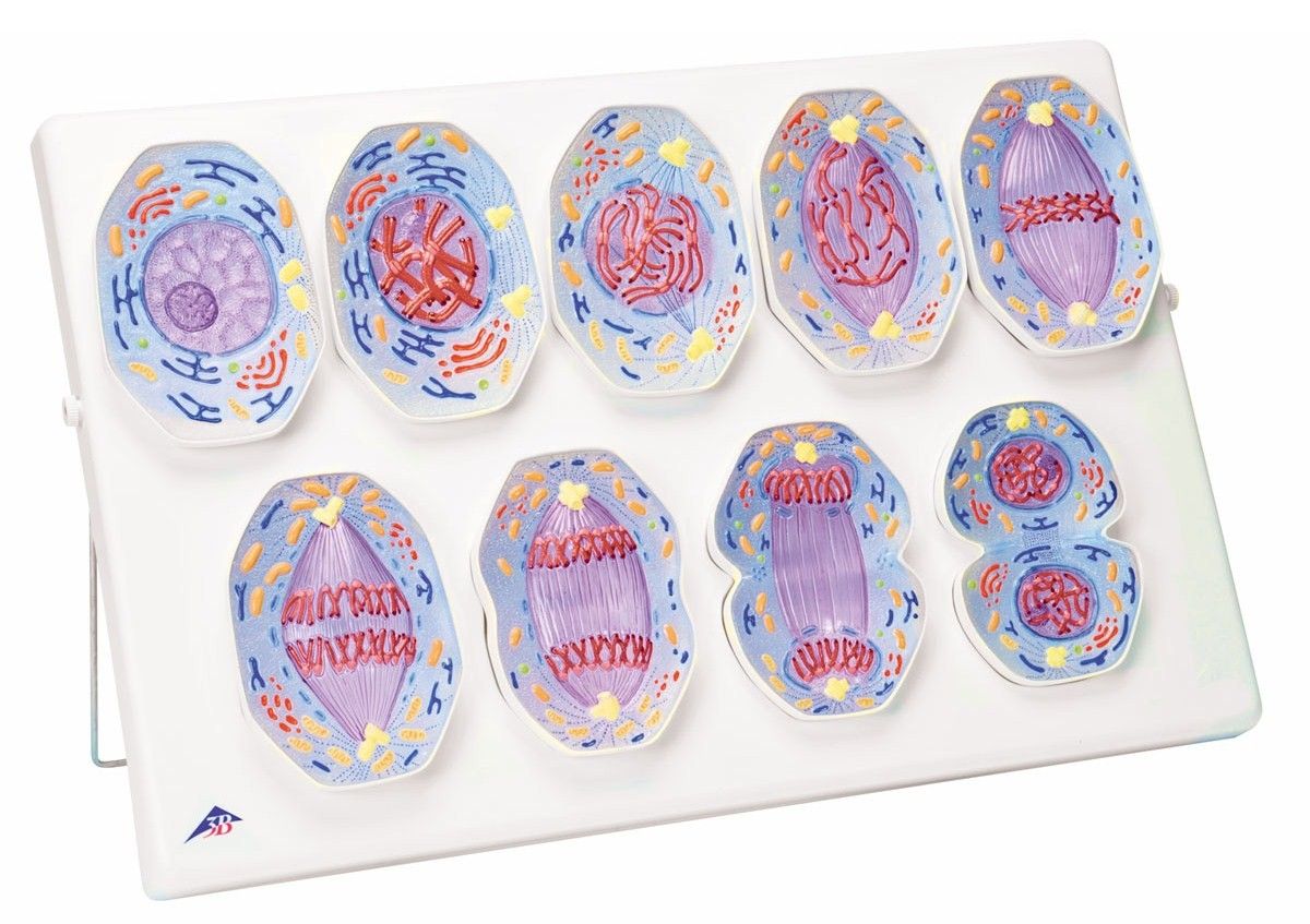 El Modelo de la mitosis 3B Scientific muestra las siguientes 9 etapas de la mitosis (aumentada 10000 veces) en un mamífero: