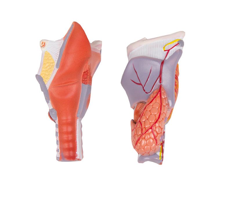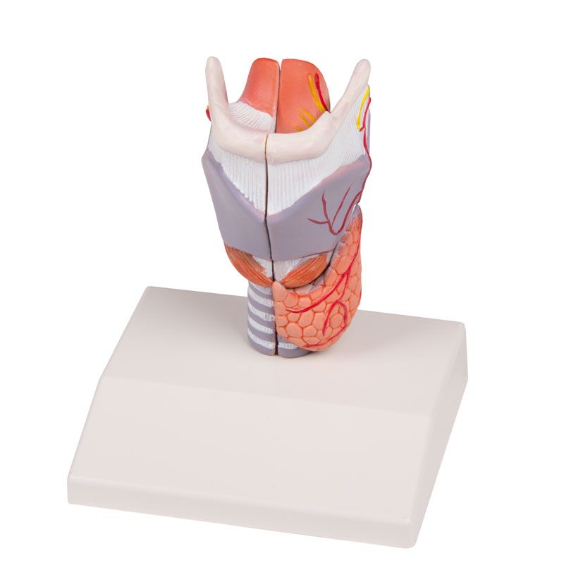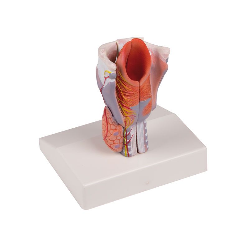 Esta reproducción de la laringe humana a tamaño natural permite analizar la anatomía de esta parte del cuerpo de forma detallada y en profundidad. Cuenta con un corte que permite separar el modelo en 2 partes para observar detalladamente las estructuras que componen la laringe como el hueso hioides, los cartílagos, los ligamentos, músculos, vasos, nervios y el tiroides. Es un modelo idóneo para los estudiantes de medicina y los profesionales de la salud que quieran profundizar sus conocimientos de la laringe y la otorrinolaringología (ORL).