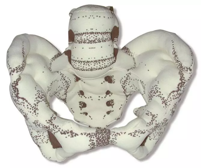 La estructura ósea de la pelvis femenina es diferente a la masculina, debido a la capacidad de adaptación que la mujer necesita para albergar un feto. Este Modelo de pelvis femenina en tela R10072 Erler Zimmer ha sido fabricado con una tejido flexible y estético que permite demostrar cómo las diferentes formas de la pelvis afectan al embarazo y al parto.