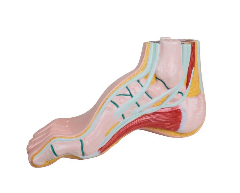 El pie cavo es una malformación del pie que se desarrolla generalmente durante el crecimiento, asociado a problemas neurológicos, se caracteriza por un pie muy arqueado y puntos de apoyo muy delgados que van a dañar rápidamente el pie además de causar desequilibrios. En este modelo se pueden observar los huesos, los músculos, el tejido adiposo y los ligamentos de esta zona.