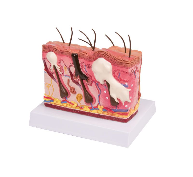 Muy ilustrativo, esta ampliación de la epidermis es ideal para el conocimiento de diversas enfermedades que pueden afectar a la piel. Este artículo se entrega con una base de exposición.