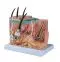 Este modelo de piel humana, aumentado 50 veces la talla normal muestra diferentes capas y estructuras anatómicas de la piel. Además de los nervios y de los vasos sanguíneos, el modelo muestra las glándulas sudoríparas, las glándulas sebáceas, los folículos pilosos, los musculos erectores, corpúsculos de Pacini y mucho más. Entregado sobre zócalo.