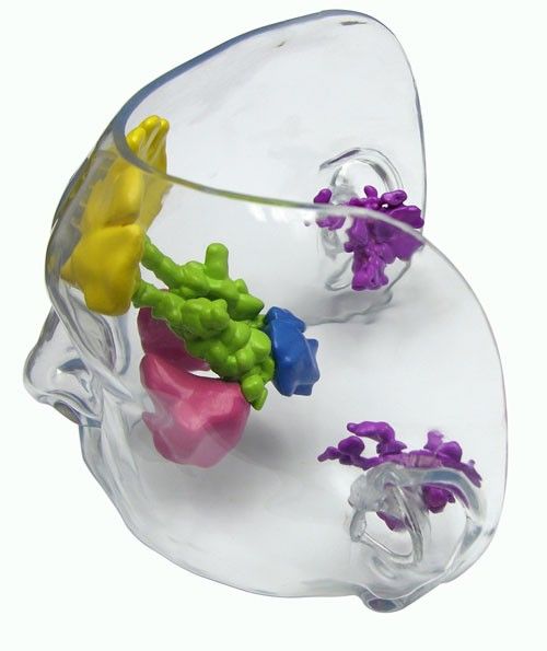 En tamaño natural, este modelo permite conocer el emplazamiento de los senos en el cráneo para el estudio de la otorrinolaringología (ORL) para los estudiantes de medicina.